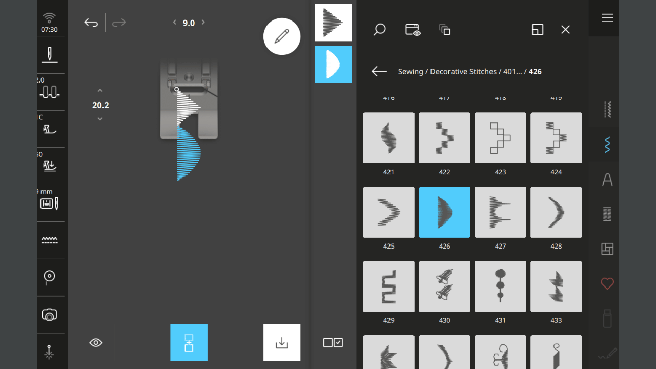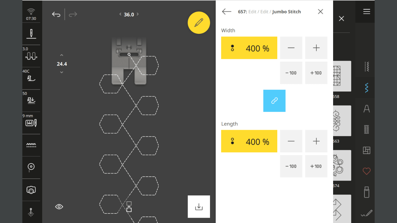 Go beyond default settings with the Stitch Designer Program. This module guides you through editing, moving and adding or deleting stitch points offering limitless creative possibilities directly on your BERNINA 990.