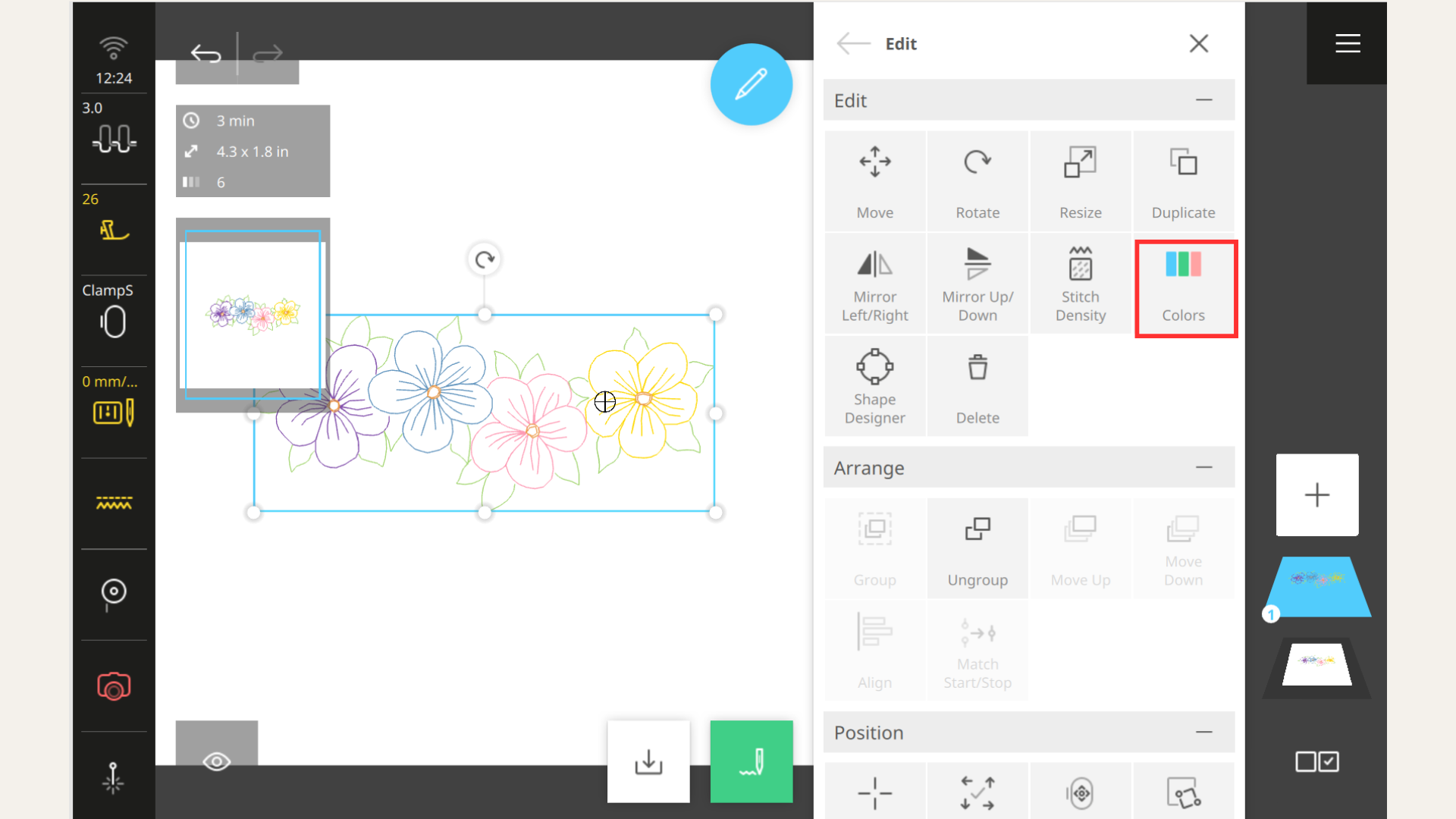 If you've ever wished for a magic wand to tweak thread colors of your embroidery design, the B 990’s Colors Function is your new best friend. Whether you're refining a palette or experimenting with bold new thread color combos, this intuitive tool makes color editing a breeze.