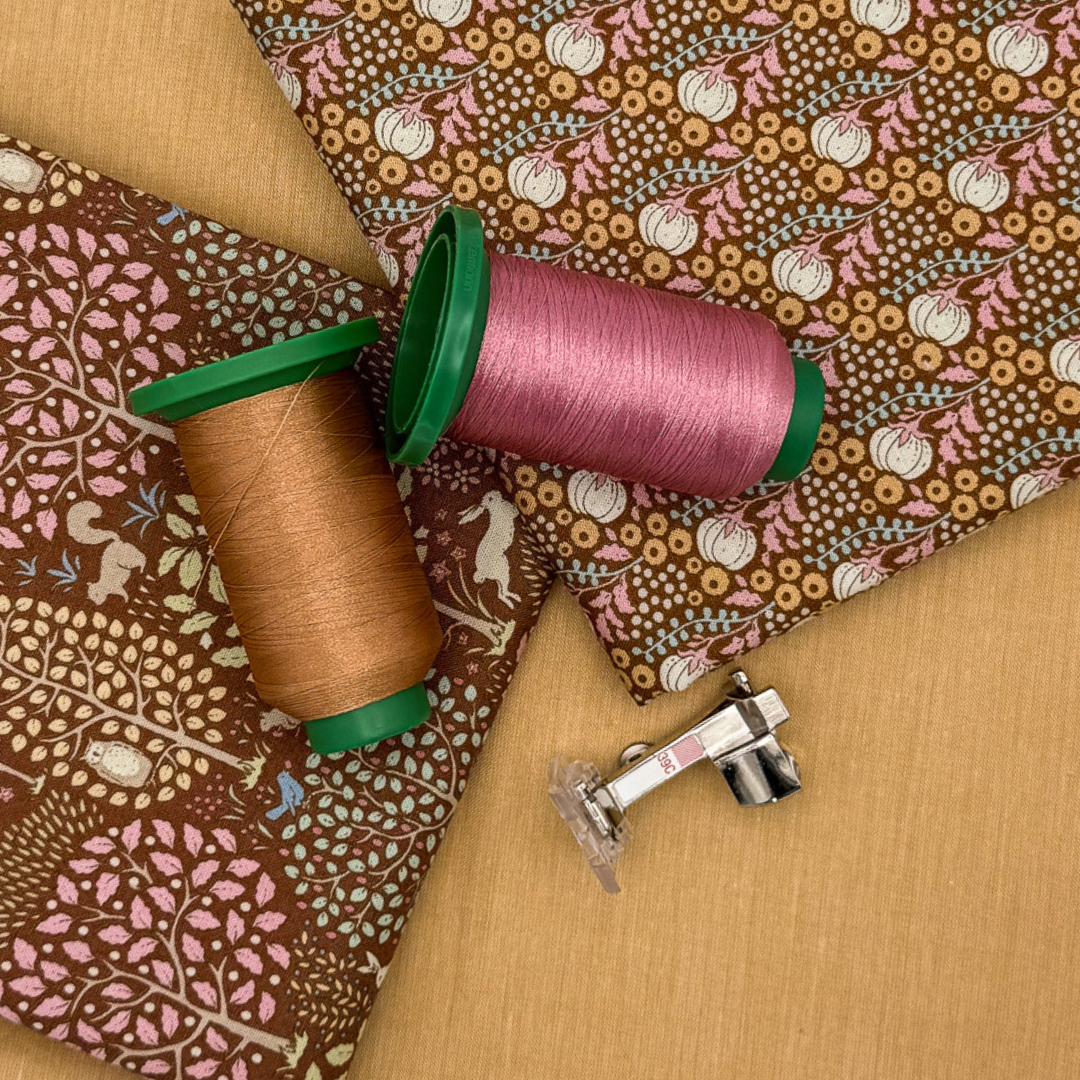 - Warm-toned foundation fabric and thread (think cinnamon, rust, gold, or deep plum)