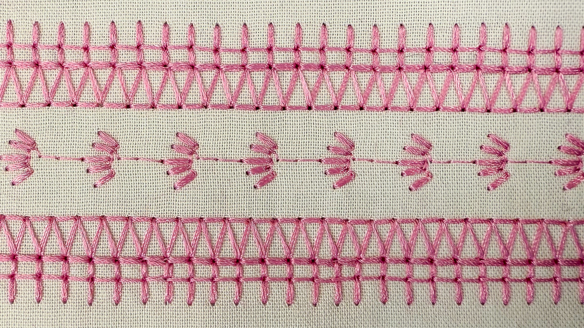 Three bold, triple-stitched patterns combine in Stitch Recipe 04. to create this 1 1/2" wide stitch combination.