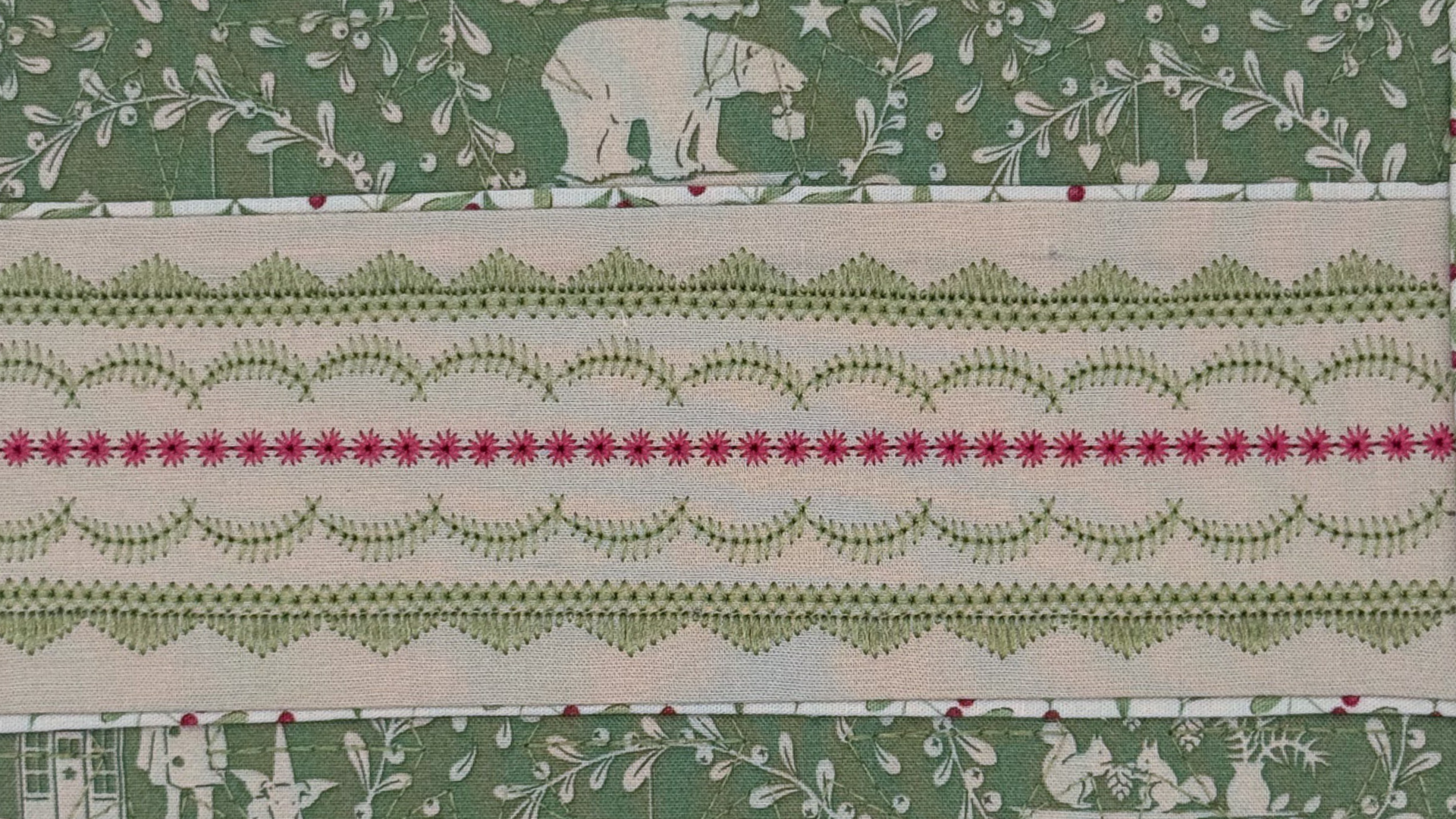 You have crafted your quilted background pattern, and the next step is hooping and re-hooping and keeping the quilted background patterns aligned. Follow this exercise to make a large piece of quilted fabric.